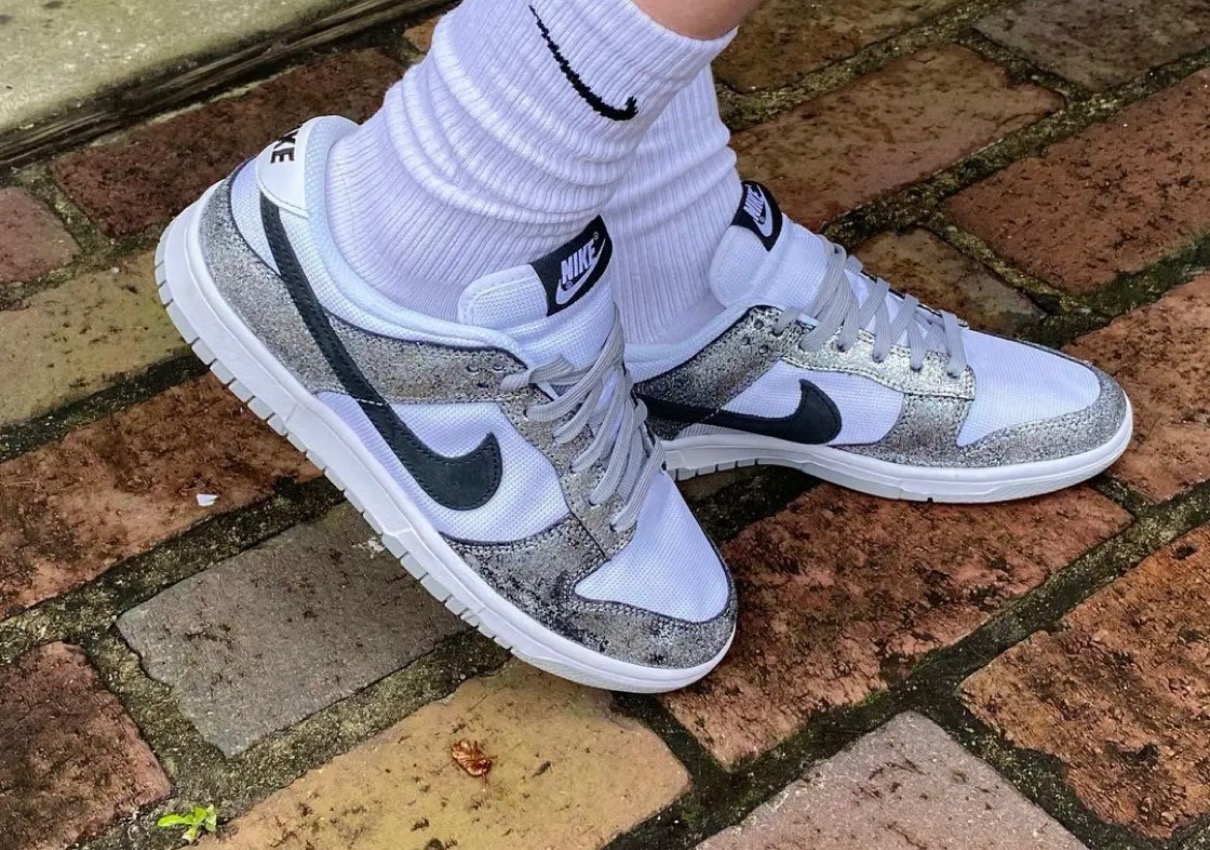 1985年に初めて発売され、昨年35周年を迎えた今、再び空前のブームを巻き起こしているナイキの人気スニーカー「ダンク」をベースとした新作モデルが登場。本作ではホワイトカラーのキャンバス生地でアッパーを構築し、オーバーレイにはレザーの経年劣化で生じるひび割れを再現したメタリックシルバーのクラックド加工を施した。サイドのスウッシュロゴにはダークグレー、アウトソールにはライトグレーカラーを使用している。
