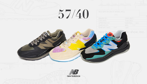 1980年代に誕生したニューバランスのアイコンデザインの流れを汲む「574」と、1990年代のウェービーなデザインから得たインスピレーションを現代へシフトさせ誕生した次世代のスニーカー「57/40」のベースにしたコラボモデルとなります。