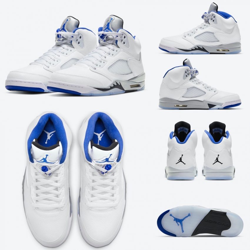 2006年に発売されたNIKE AIR JORDAN 5 STEALTHによく似たカラーのモデルとなり、ホワイトのレザー素材のアッパー、ロイヤルブルーのジャンプマンロゴが配置されたシュータン・アウトソール、ロイヤルブルーのシューレースストッパー・ライニング・インソールなどのデザインが特徴的なモデルです。