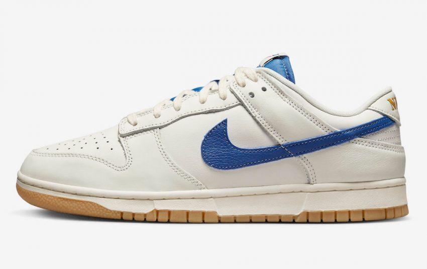 1985年に初めて発売され、今再び空前のブームを巻き起こしているナイキの人気スニーカー「ダンク(Dunk)」。新たに登場する本作ではローカットモデルをベースに採用し、セイル系カラーのレザー素材アッパーとブルーのスウッシュロゴ&シュータンを組み合わせてシューズを構築。シュータンラベルやインソール、ヒールパッチには普段と異なるフォントのNIKEロゴを配置し、アウトソールはガムライトブラウンで引き締めた。