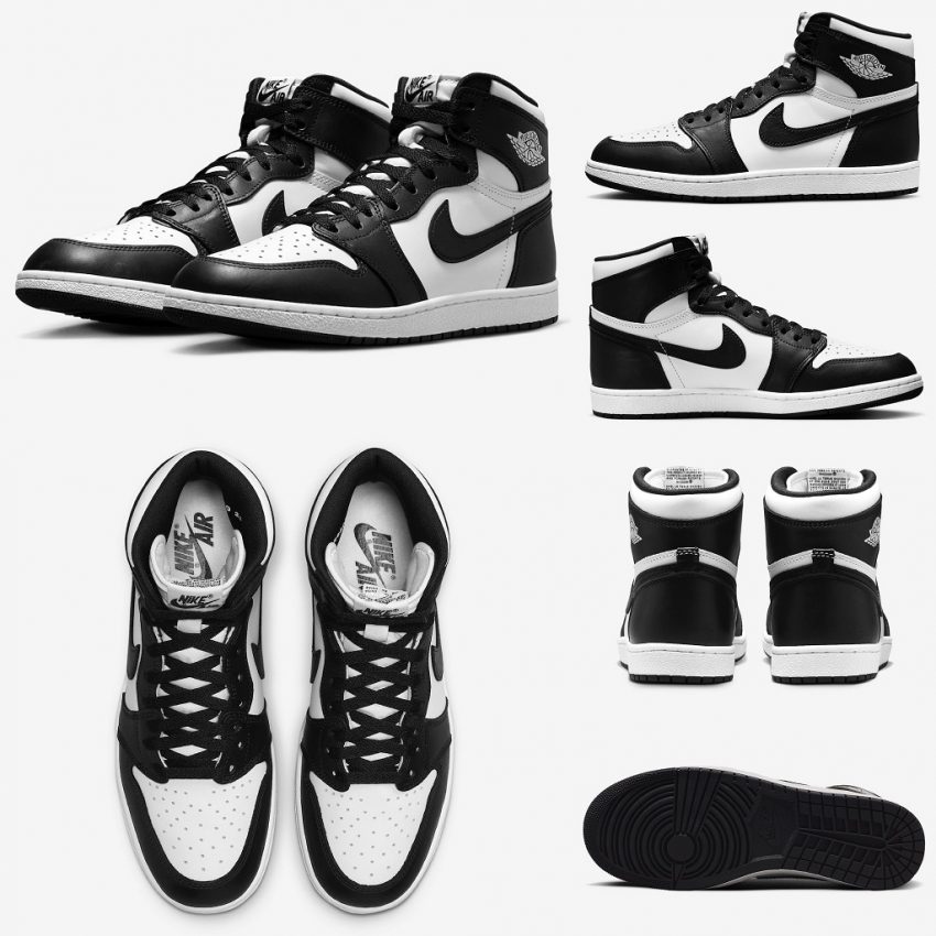 1985年に発売されたオリジナルカラー「BLACK WHITE」をモチーフしたブラックのオーバーレイとサミット・ホワイトのアンダーレイで構成されたプレミアムレザー素材のアッパー、ブラックのスウッシュとアウトソール、1985年に発売されたAIR JORDAN 1 HIGHを忠実に再現したシルエットなどのデザインが特徴的なハイカットモデルです。