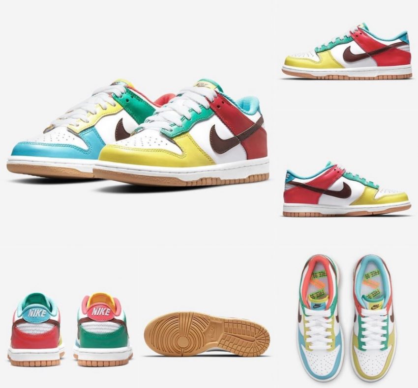 1985年に初めて発売され、35周年を迎えた今、再び空前のブームを巻き起こしているナイキの人気スニーカー「ダンク」。今回新たに登場するのは、レザー素材で構築したアッパーに、左右非対称なマルチカラーをあしらった新作モデル。ベースとなるカラーはホワイト、ブラックの2色となり、イエロー、レッド、グリーン、ブルーといったカラフルなカラーが落とし込まれ、インソールには「Free.99」のグラフィックがプリントされる。