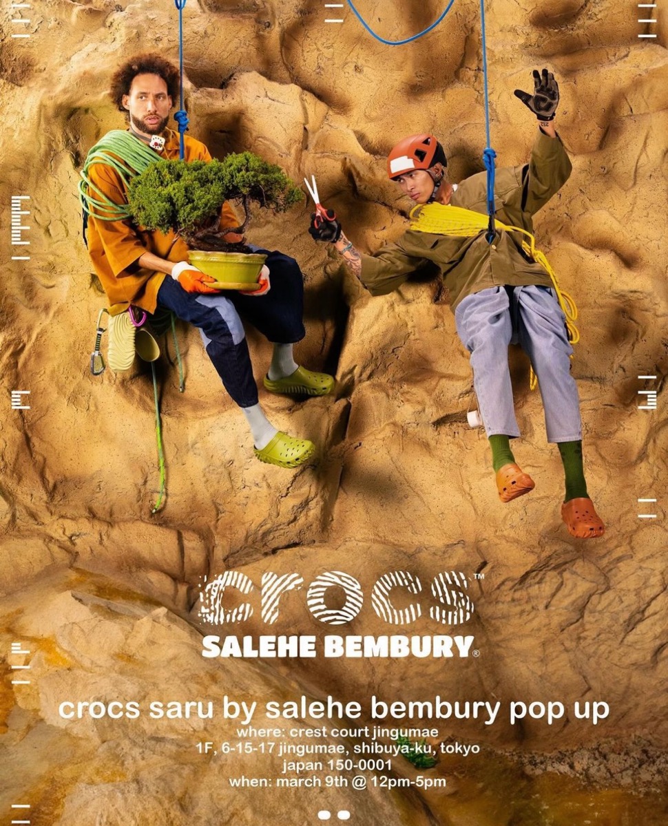 シューズデザイナー界の革命児「Salehe Bembury(サレヘ・ベンバリー)」と、カジュアルフットウェアブランド「Crocs(クロックス)」による新型コラボサンダル〈Saru Clog〉が、国内2024年3月9日(土)に神宮前のポップアップで日本先行発売予定。