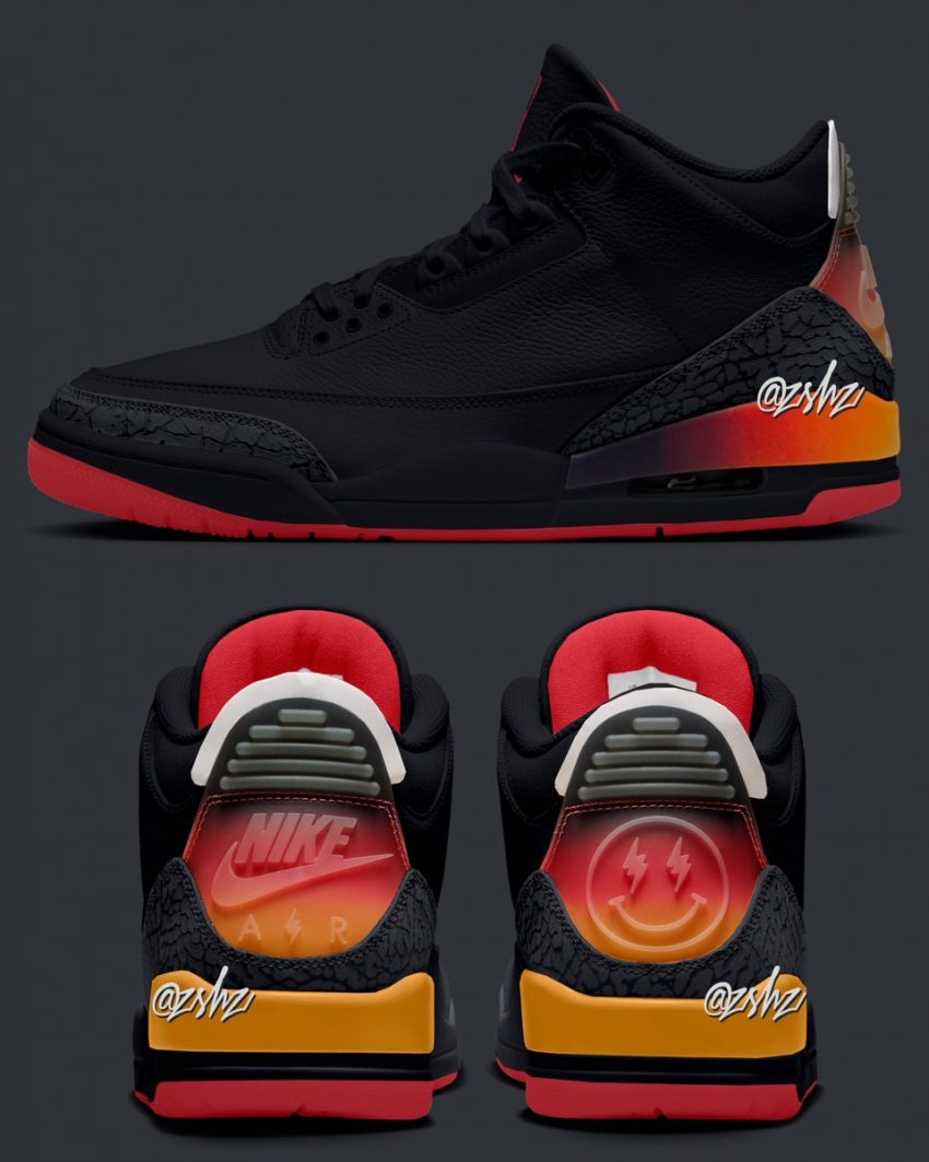 伝説的シューズデザイナー Tinker Hatfield(ティンカー・ハットフィールド)がデザインを手がけ、1988年に初登場した「Air Jordan 3(エアジョーダン3)」。2023年9月にリリースが予定される J Balvin × Nike Air Jordan 3 Retro SP “Medellín Sunset”に続き、再び AJ3 をベースとした新作の情報が舞い込む。今回リークされた一足ではバルヴィンの息子である“Rio”の名を冠し、ブラック/ソーラーフレア/トータルクリムゾンアビスといったカラースキームが使用。Iが雷マークのNIKE AIRとバルヴィンのスマイリーフェイスマークが刻まれたヒールのTPUパーツとミッドソールには、バルヴィンの故郷であるコロンビアの都市『Medellín(メデジン)』のサンセットを想起させるイエロー/レッド/ブラックのグラデーションカラーが落とし込まれている。