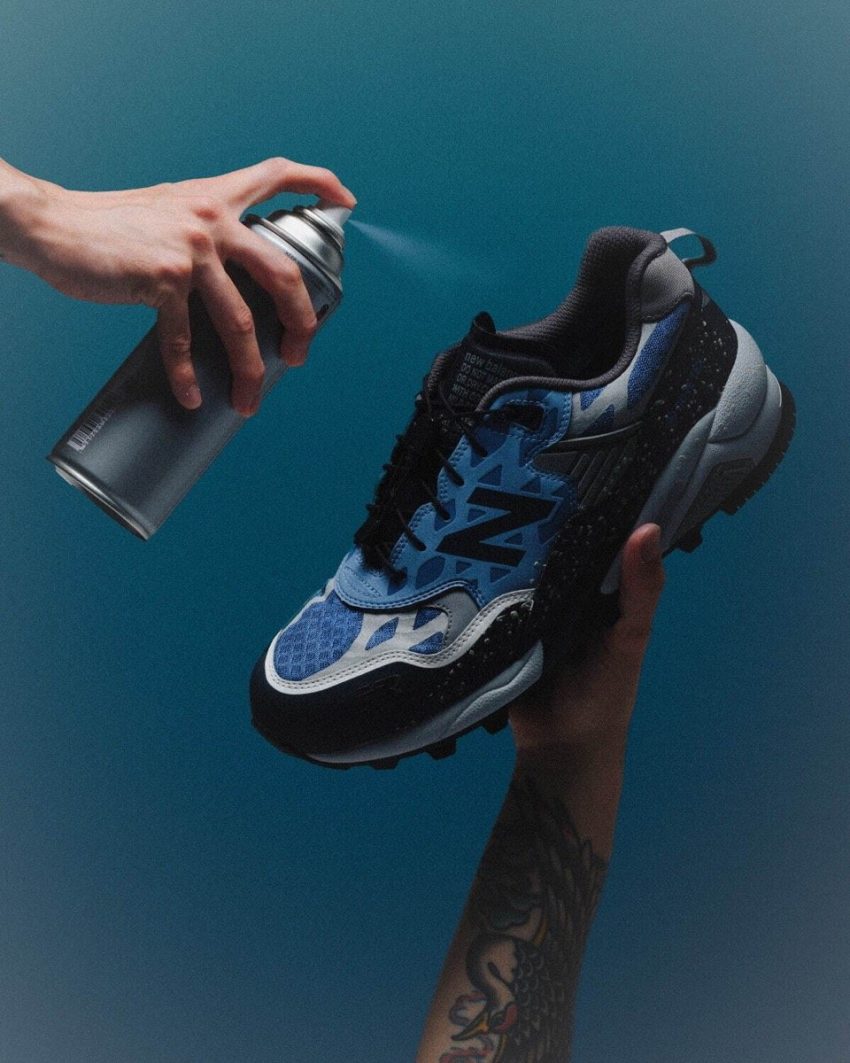今回のコラボでは、昨年10月にリリースされた話題作 MASTERPIECE SOUND × Hombre Niño × mita sneakers × NB 580 GTX が持つハイスペックな機能を受け継ぎつつ、ストリートに映えるデザインでアップデート。ブルーのアッパーにはマーキープレイヤーを象徴するスニーカー用撥水撥油スプレーから着想を得たスプラッシュ柄を落とし込み、インソールにはミタスニーカーズのアイコンである金網と“東京改”のグラフィックをプリント。