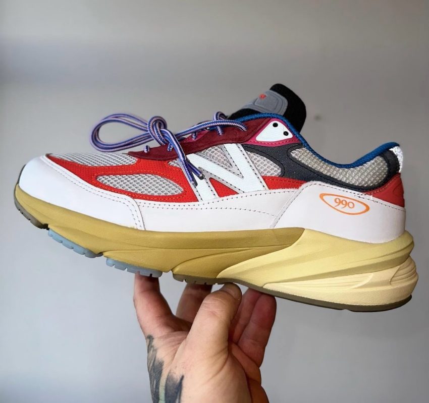 ニューバランスの熱狂的ファンとして知られるアクション・ブロンソンがニューバランス990v6の新作コラボレーションモデルと思しき一足を公開。ニューバランスを象徴するフラッグシップシリーズ900番台最新作 Made in U.S.A.の『990v6』は、前作 990v5 に比べデザイン上ではミッドフットサドル(足の甲を横断するパーツ)が無くなった点が大きな特徴。見えない部分では、ランニングシューズに用いられる FuelCell(フューエルセル)ミッドソールのクッショニング・反発弾性・軽量性が加わり、往年のファンを唸らせるシリーズ随一の履き心地を実現。今回登場する“Untitled”は、ホワイトにハイピンクやロイヤルブルー、ダークレッドなどのアクセントで仕上げており、更なる別カラー“Amazõnia”も公開されている。