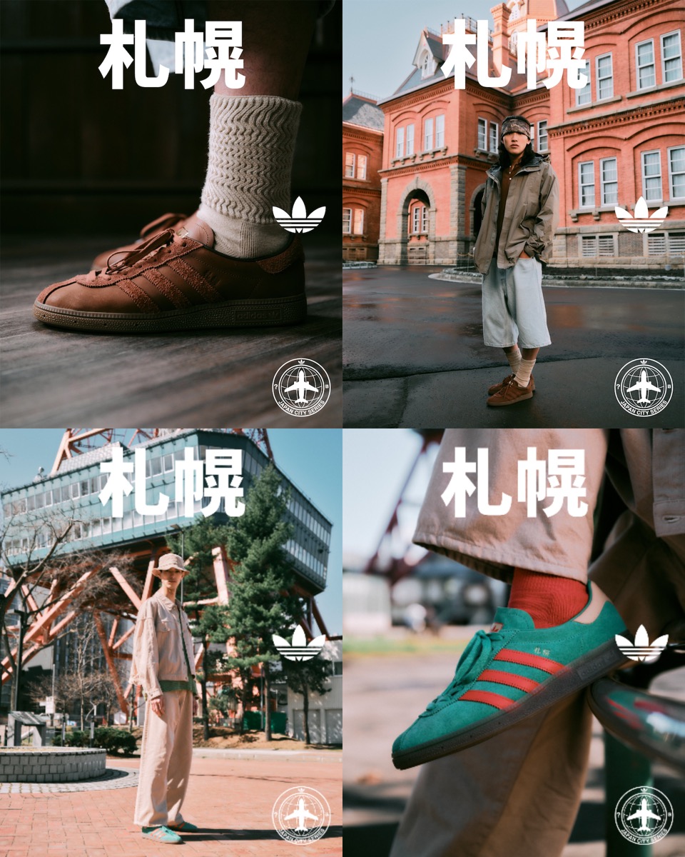 これまでに数多くリリースされた“City Series”(シティシリーズ)の中でも、日本の都市名を冠したモデルは非常に少ない。今回、日本のBILLY’S、UKのsize?の2つのスニーカーブティックのパートナーシップによる日本の都市をフィーチャーした「Japan City Series(ジャパン・シティ・シリーズ)」コレクションが登場。その第一弾として選ばれた都市は、北海道の“札幌”。ドイツのミュンヘンが札幌の姉妹都市であることから、過去の“CITY SERIES”のアーカイブからMUNCHEN(ミュンヘン) をベースモデルにセレクト。スリーストライプの横に入る「MUNCHEN」のモデル名は「札幌」に変更され、ブラウンとグリーン/レッドの2色は、日本のBILLY’SとUKのsize?がそれぞれ“札幌”をイメージしてカラーリングを行ったオリジナルモデル。