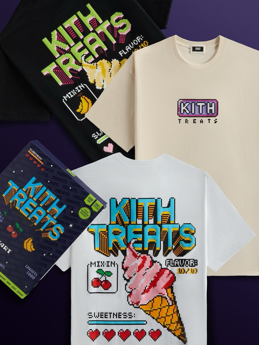 「Treats Arcade」カプセルコレクションと新メニュー「The Power-Up」は、数量限定で7月26日(土)より世界中のKith Treats店舗で展開。TシャツはKith.com、CA.Kith.com、EU.Kith.com、Kithアプリでも販売予定だ。新たな情報は判明し次第随時更新予定なのでお見逃しなく。