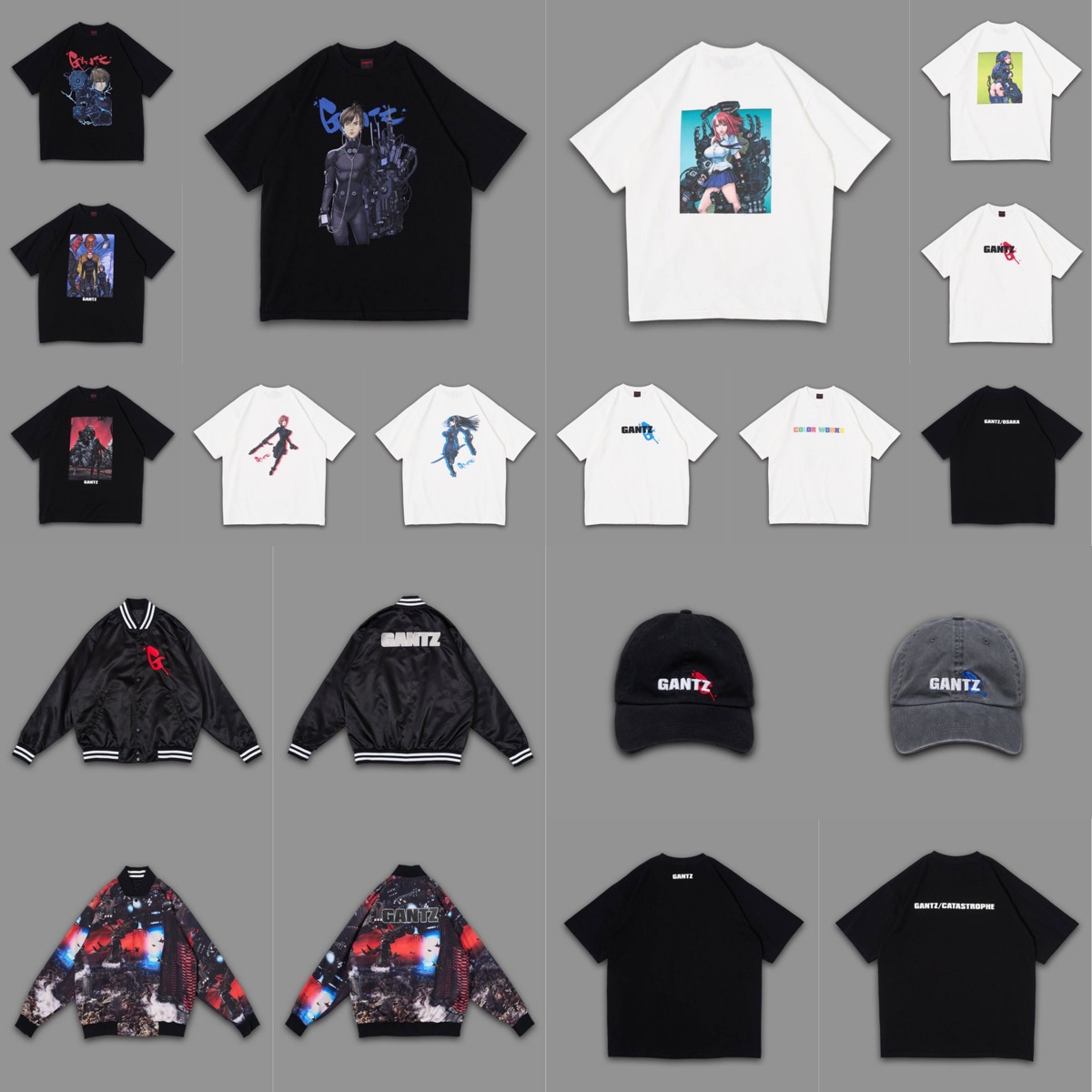 Tシャツコレクションには、本作の主人公である玄野計が Z ガンを構えている描写や、人気キャラクターのひとり西 丈一郎、玄野と幼馴染である加藤 勝や大阪チームのメンバー、ボスキャラであるぬらりひょん、天狗、狗神、カタストロフィ編の渋谷の描写、ヒロインである岸本とレイカらに加え、ミラクルジャンプの表紙に掲載されたグラフィックなども使用。さらに、GANTZロゴがあしらわれたファン垂涎のキャップもラインナップする。