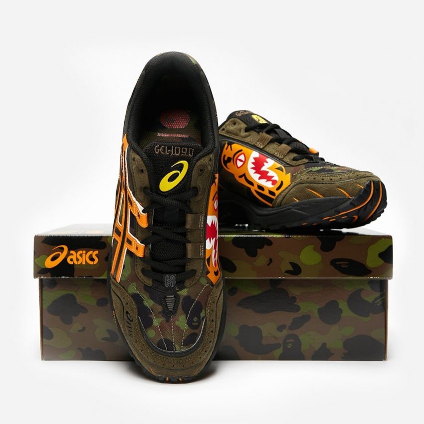 ベイプことア・ベイシング・エイプとアシックスによる虎モチーフの新作コラボスニーカー『ゲル1090』が登場。