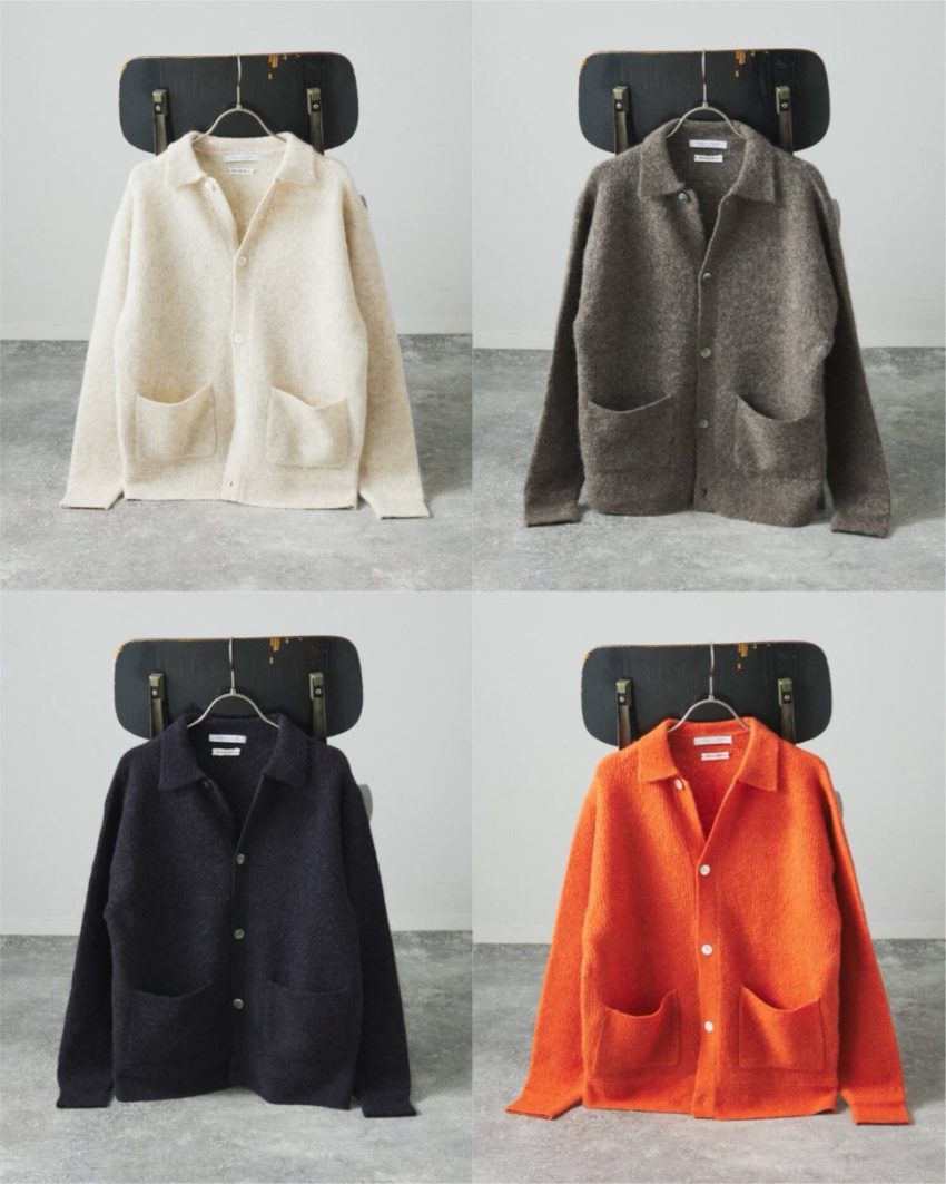 ヤクとアルパカをブレンドした上質なニットを使用し、変形タック編みによる立体的な凹凸感が特徴のカーディガンが登場。軽さと暖かさを兼ね備え、柔らかくチクチクしにくい快適な着心地を実現。自然な深みのある色合いや、ほんのりとした光沢感もヤクアルパカならではの魅力。新型の襟付きデザインは、1枚で羽織としてもインナーとしても使いやすく、着こなしの幅を広げてくれる。シルエットは大きすぎず小さすぎない絶妙なバランスに調整し、シーズンを問わず活躍するベーシックな一着に仕上げている。カラーはナチュラル、ブラウン、ネイビー、オレンジの4色が展開。