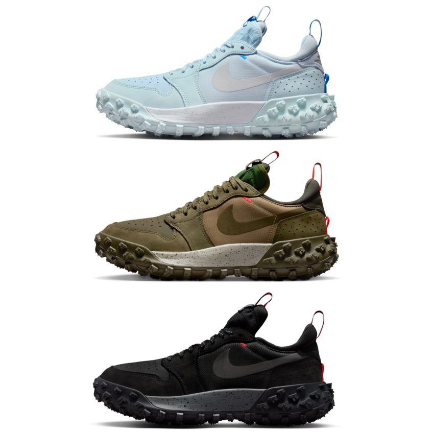 内部のブーティ部分は、標準的なエアジョーダン1のタンで覆われ、つま先部分からミッドフットまでを優しく保護。 オーバーレイは柔らかいスエード素材で、ヒール部分にはマイクロパーフォレーションが施されている。80年代から続くナイキのDNAと頑丈なアウトソールを備えた今作は、ホワイト/グレイシャーブルー、ミディアムオリーブ、ブラック/チャレンジレッドの3色が展開する。