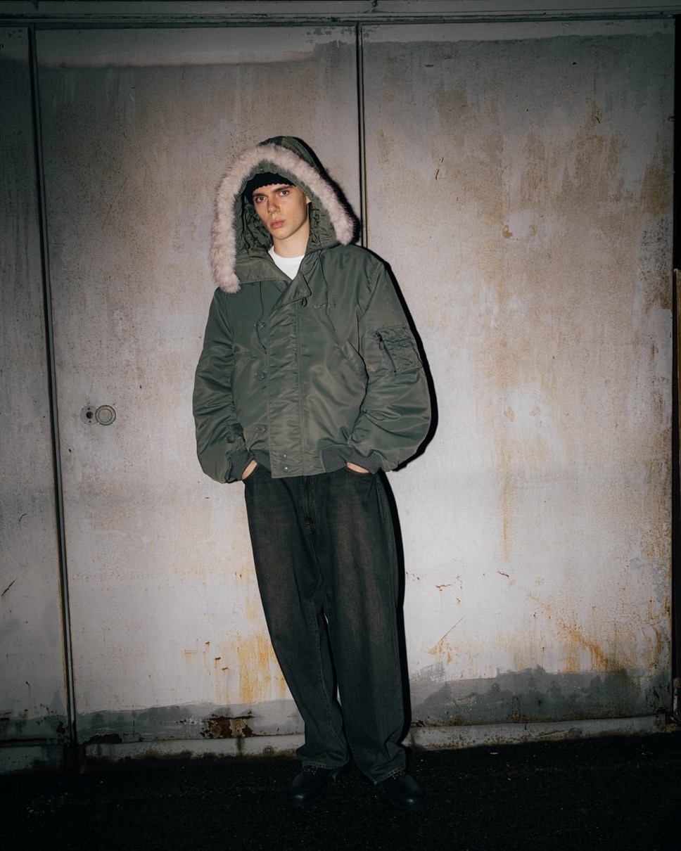 〈WILD THINGS〉に別注した、新型ミリタリージャケットが登場。フライトジャケットの名作「N2-B」をベースに、上品な光沢を放つナイロンサテン生地を採用し、中綿には高機能素材「PRIMALOFT」を使用し、軽さと優れた保温性を両立。さらに、裏地にはブランドを象徴する“波キルト”を施し、〈WILD THINGS〉らしいアウトドアのエッセンスをプラスしている。武骨なミリタリーの表情に、都会的なムードと機能性を掛け合わせた、〈BEAMS〉だけのスペシャルな一着だ。