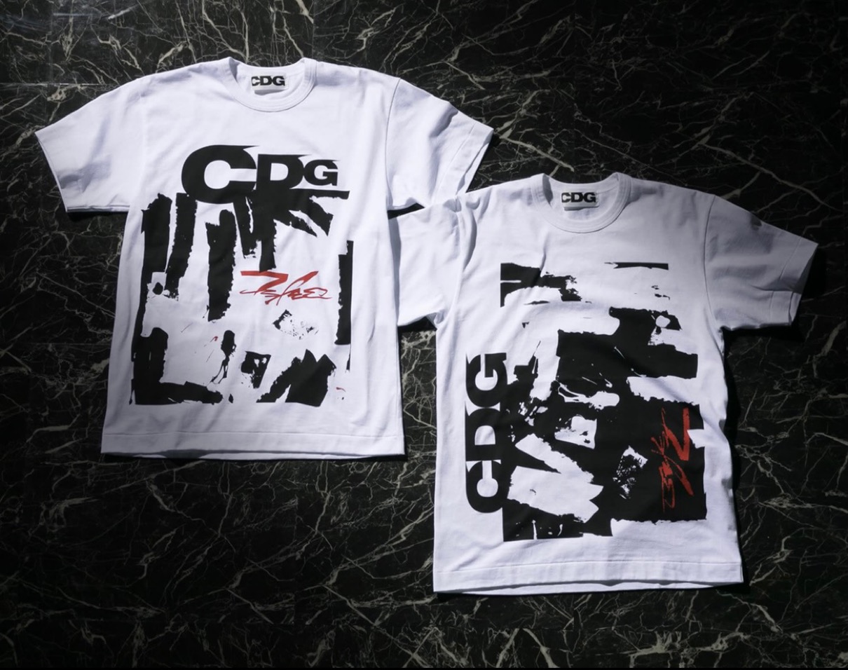 今回のコラボレーションでは異なるグラフィックを落とし込んだ2型のホワイトTシャツが登場。Futuraらしいデザインとレッドカラーのシグネチャーに、アイコニックな「CDG」ロゴをブラックカラーで組み合わせた。