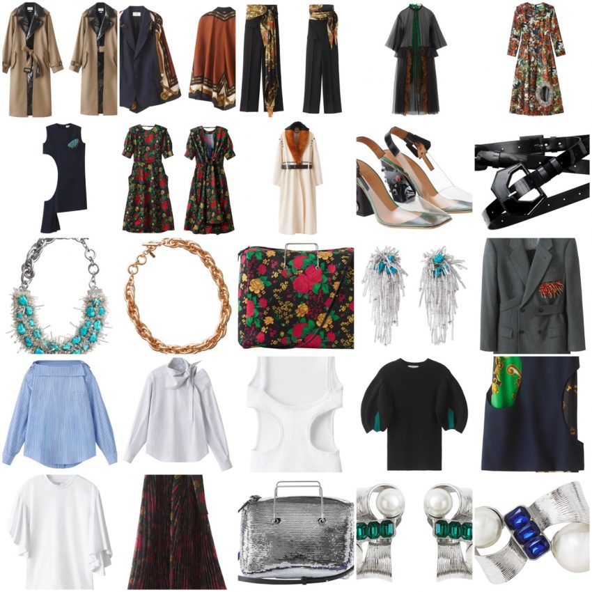 バックにスカーフをドッキングしたトレンチコートや、エッジの効いたビーズ装飾をポケット部にあしらったテーラードジャケット、花柄のドレスワンピース、ギンガムチェックのスカートなどのウィメンズアイテムをはじめ、メンズにはスカーフデザインをあしらったリバーシブルボンバージャケットやルームウェア、ハイブリッドトレンチコート、セーター、シャツなどがラインナップ。雑貨には主張の強いビーズイヤアクセサリー、バッグに加え、メッシュパンプス、ブーツなどのシューズ類も揃う。